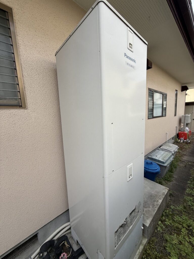 富谷市のN様邸にて、15年間ご使用されたエコキュートの交換工事を行いました。国の「給湯省エネ事業」補助金を活用し、最新のパナソニック製エコキュート「HE-S46LQ」へ交換。省エネ性能を高め、安心して使えるお湯の環境を整えました。